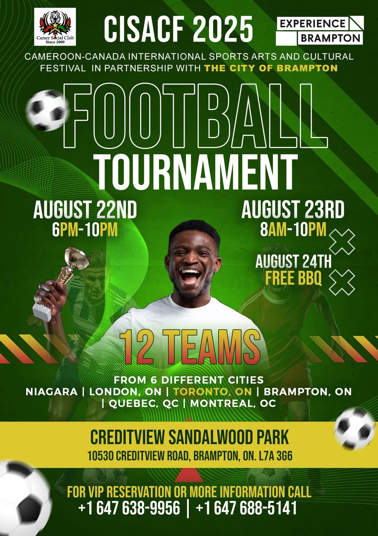 Camer SC is where culture, community, and connection come alive! Based in the heart of the Toronto GTA, we’re a vibrant Cameroonian social club uniting people through cultural exchange, sports, and shared experiences. Whether it’s soccer matches, community events, or just good vibes, we celebrate unity, heritage, and the joy of togetherness. Join the movement — where roots meet rhythm, and every event feels like home!